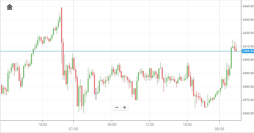米ドルと反対に動くことが多い金だが、この日はほぼそのセオリー通りに動いた。7日朝方に3,380ドル台にあったNY金は、午前中に多少下げたもののすぐに元の水準に戻り、その後は午後から夜にかけて3,380ドル台で小動き。そして米政策金利発表のあった8日午前3時頃にはトランプ大統領の発言もあり上昇。しかしすぐに下げに転じて一時は3,360ドル台をつけたが、8日朝方には再度買われている。