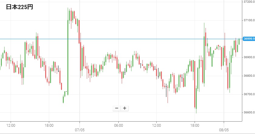 GW後半の4連休が終わり、7日に東京株式市場が再開された。前日のNYダウは389ドル安で終わった後、早朝に日経225先物が数百円急騰したが午前9時の市場開始前に下落。そして日経225平均は73円高の36,903円で寄り付き、その後は前場から後場まであまり動きがなく36,800円付近で横ばいが続き終値は51円安の36,779円だった。夕方以降の先物もしばらく動きのない相場が続いたが、8日未明の米政策金利発表後に多少上昇した。
